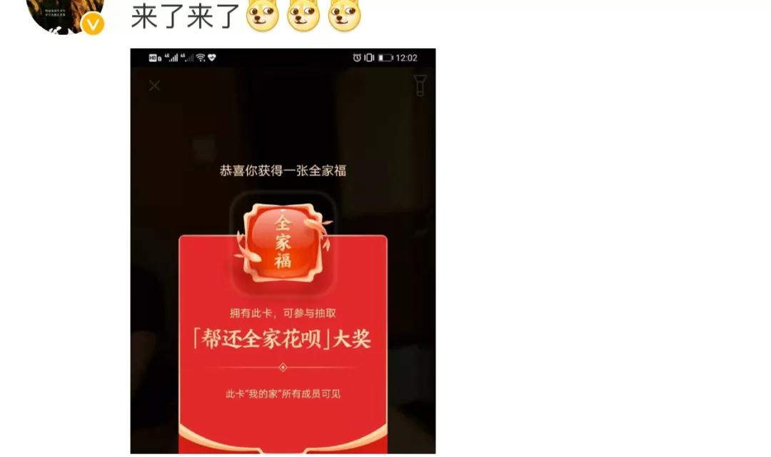 它可以有机会获得帮全家人还花呗的大奖。
