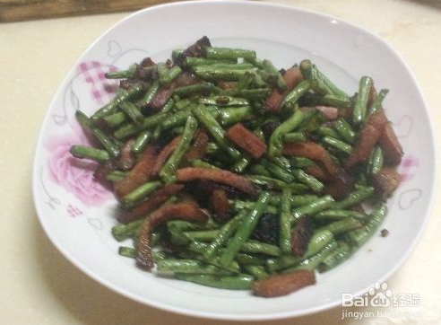 介个是腊肉炒豆角,腊肉是从四川老家带来的正宗的腊肉,吃起来非常的香啊~