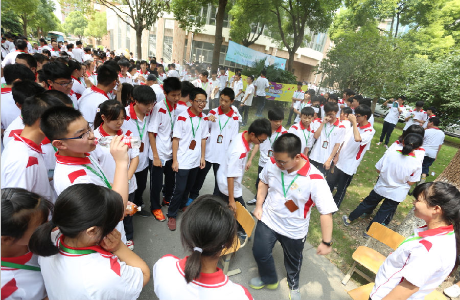 飞溅起来的水花是这个夏末的最后一丝清凉,吹乒乓球游戏中,三位老师齐上阵,最快将第一个纸杯里的乒乓球一直吹到最后一个纸杯里就算胜利,吹重了,乒乓球被吹掉了地,吹轻了,乒乓球一动不动,只见老师们使出浑身解数。平日里严肃、不苟言笑的师长在此时此刻就好像回到了校园年代,笑起来就像一个大孩子。