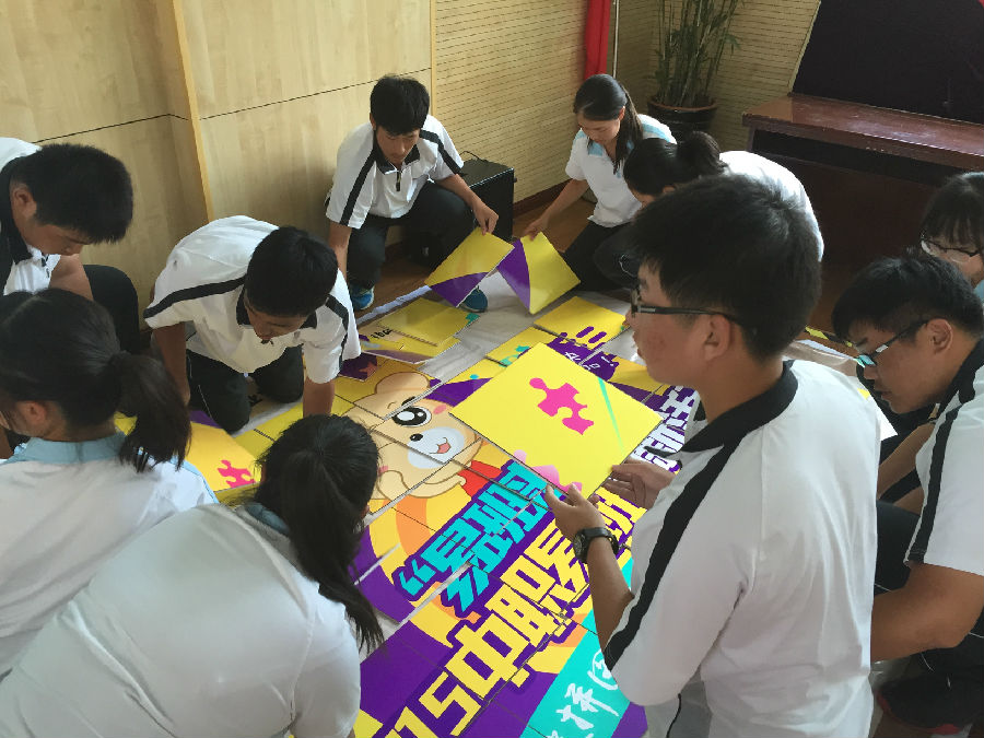 拼图环节就更不用说了,十位同学组成了拼图战队,用4分钟完成了拼图,看着大家团结起来而完成的成果,每个人脸上都洋溢着胜利的笑容。