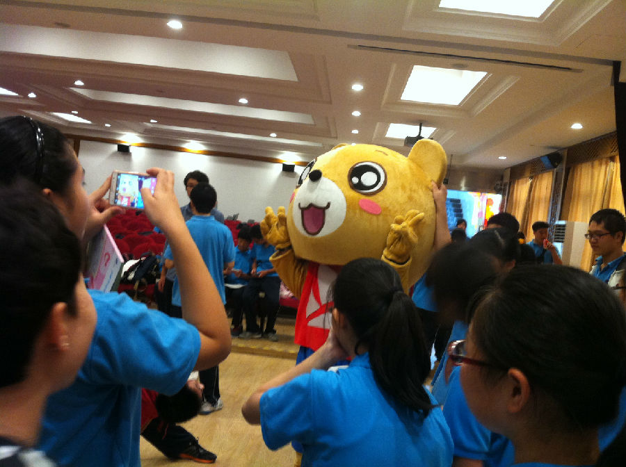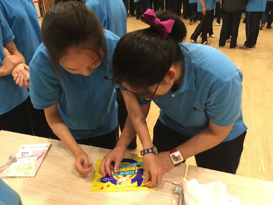 在问答环节结束后,本次游园活动的最高潮部分终于到来了!10位同学组成小组上台拼图,由工作人员进行计时,最终成绩将其他学校进行比拼。在同学们的共同努力下,我校本次易班熊拼图战的成绩是:3′01″,暂列校际第一名!