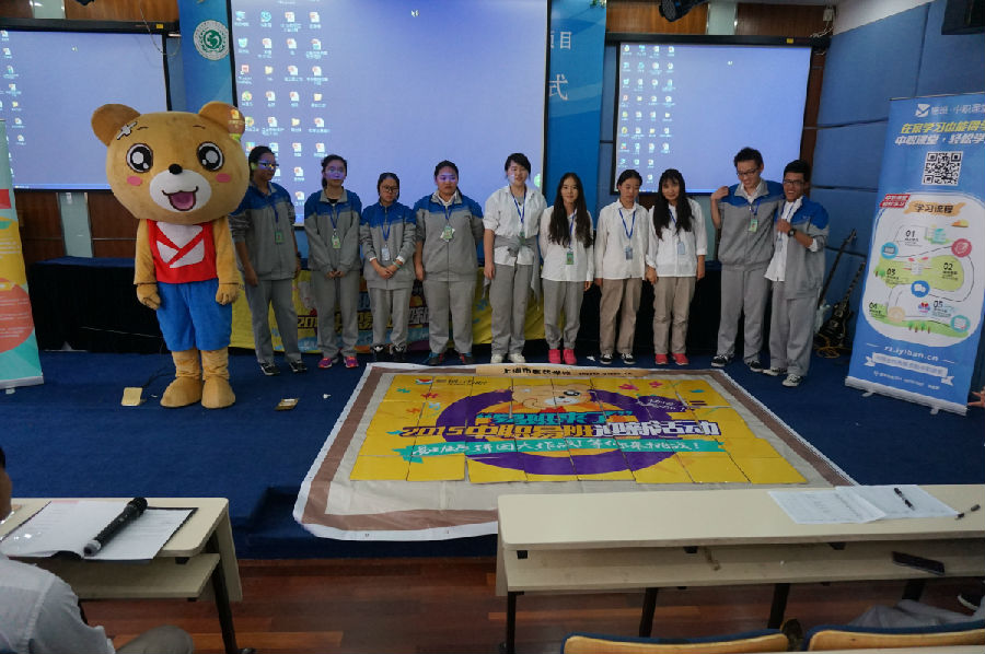 活动当天,我们很荣幸的邀请到了来自易班发展中心的鈄老师,上海医药学校茅燕萍副校长、网络课程《膳食与保健》的指导老师赵统臣老师和我们共同度过了这美好而愉快的下午虽然我们的活动在室内,但这丝毫没有影响到同学们的热情。室内的热烈气氛与室外的阵阵寒意形成了鲜明的对比,同学们对节目都十分认真:在认真听完老师对易班的介绍后,积极回答问题赢得了奖励;邀请了校乐队演唱五月天的《温柔》把气氛调高;之后尤其是在拼图活动的环节,来自各个新生班级的10位同学,在没有任何排练的前提下,通力协作,以5分钟的成绩取得了拼图活动里较好成绩。现场的同学都为他们加油喝彩。