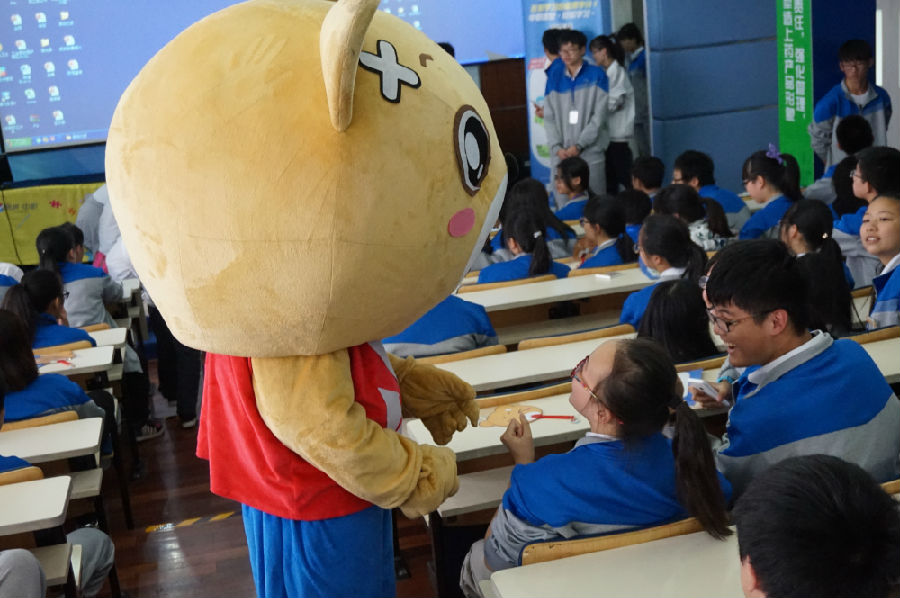 来自15622卞霄麒扮演的易班熊,熊熊在于同学们亲密交谈(感谢他对易班工作的支持!!!)